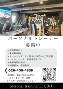 パーソナルトレーニングCLUB-Jでは、この度、一緒に働いてくれるパーソナルトレーナーを募集いたします。